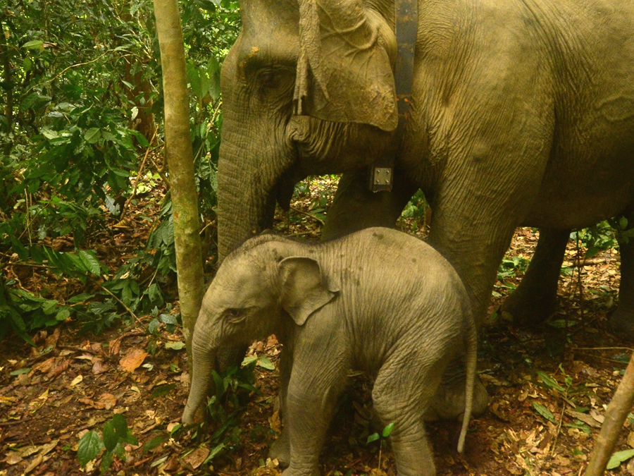 Ginting is a beautiful Sumatran elephant living in a herd of over 20 elephants in the Bukit Tigapuluh ecosystem. At over 30 years of age, she had her male calf Chrisna with her when she was first collared in January 2014. Chrisna was only a few weeks old at the time but the baby bull has developed into a buffalo-sized healthy youngster, always up for trouble and play!