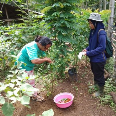In the photos below you can see household gardens, women applying organic fertiliser to their farms, and women sourcing and creating natural medicines from their farms and nearby forest.
