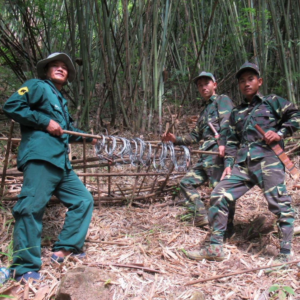 Below you can see some of the staff and military during their training, planning their patrols, and pictured with a cache of snares removed from the forest.