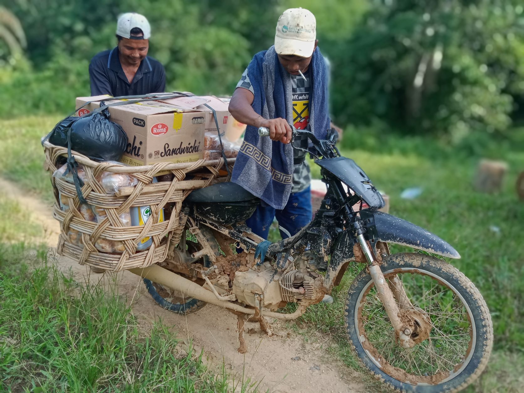 There is only one road into Simerantihan hamlet, where the Talang Mamak community live. This dirt road is often damaged when it rains and vehicles must cross two rivers, making it challenging to reach the village. In addition to walking and motorbikes, the only access into the village is a four-wheel drive vehicle.