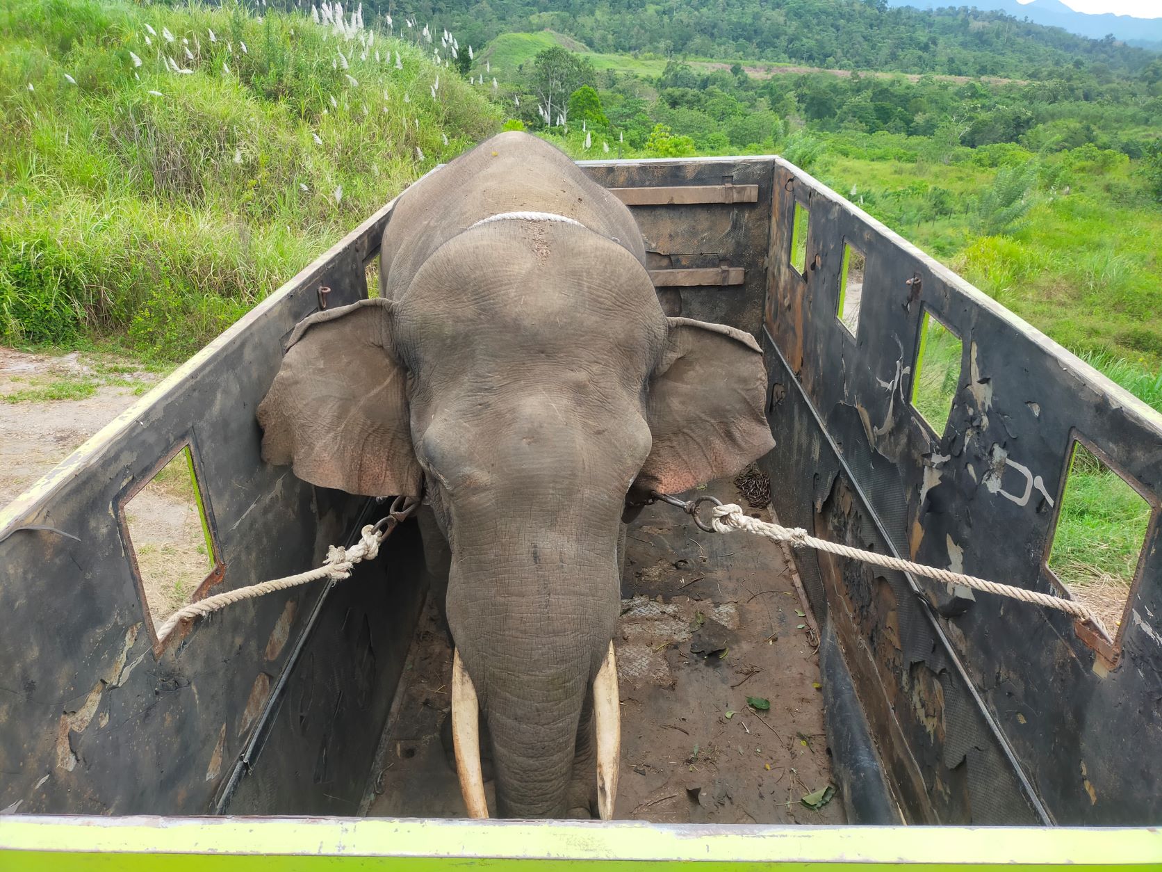 Translocating a male elephant back to the forest