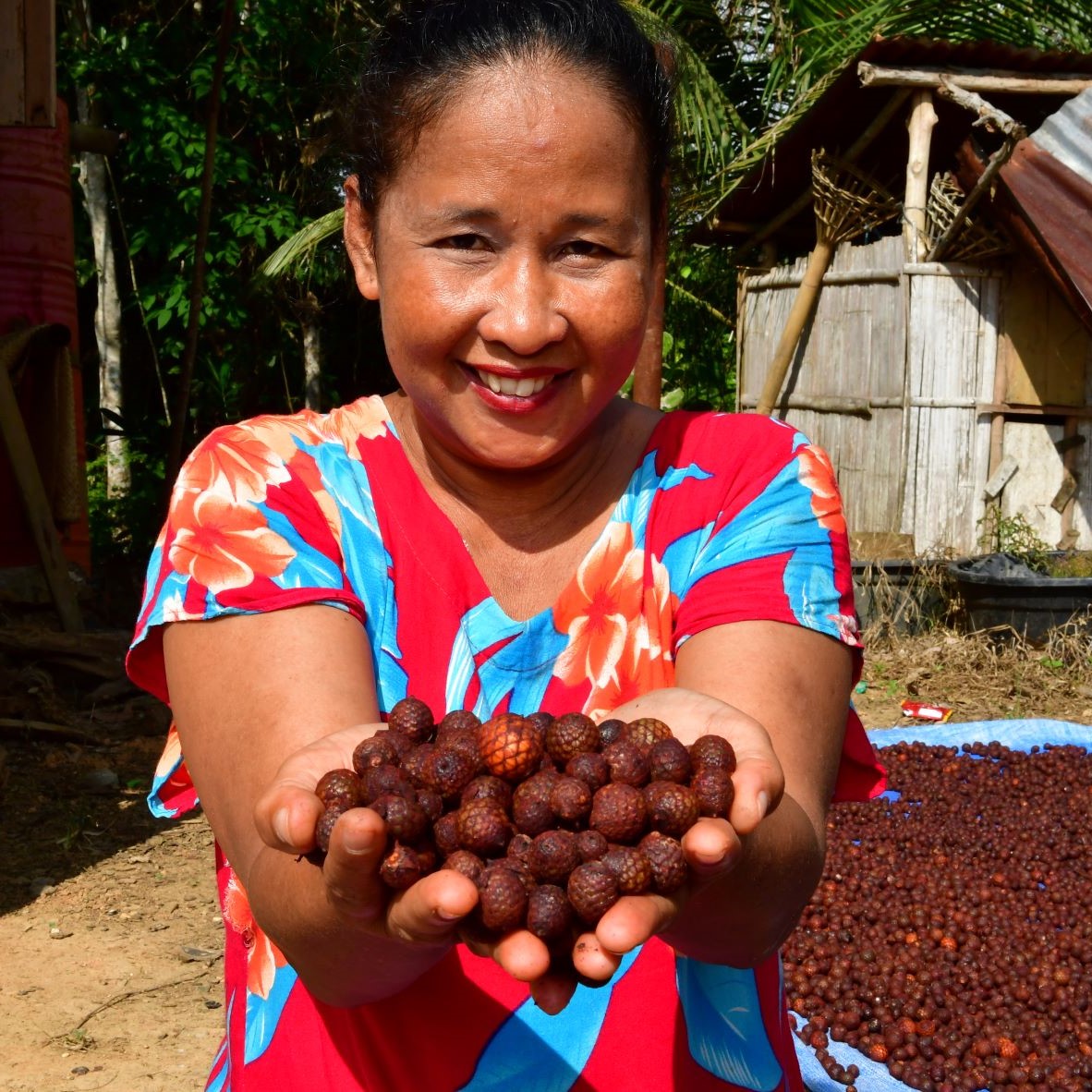 The Talang Mamak village is about ten hours from the nearest large city of Jambi, and about 20 minutes from our base camp in the Bukit Tigapuluh Ecosystem. The community includes just under 60 families, with around 230 people living in the village. Their houses are spread out, and each home has about 500 square metres of available land. However, most of these plots of land are bare soil, low in nutrients, and compacted by free range goats.