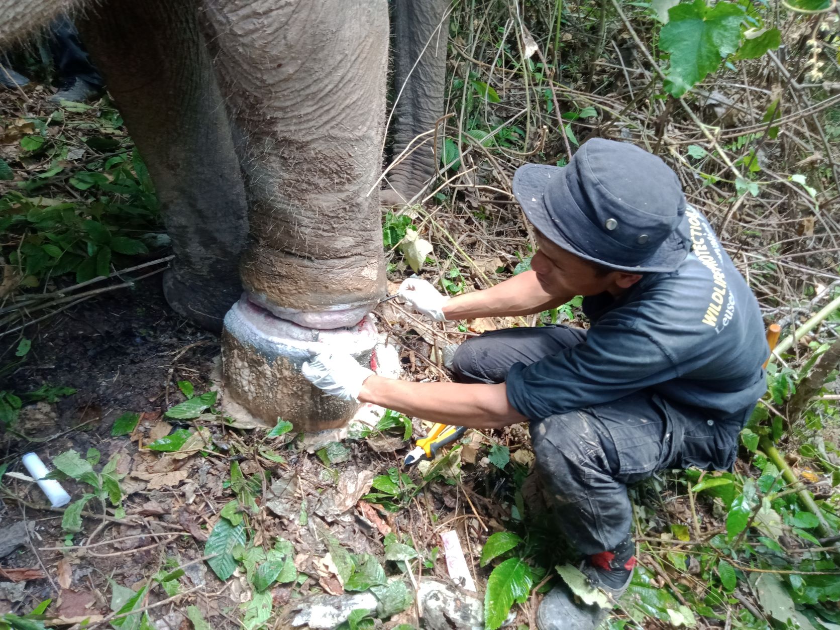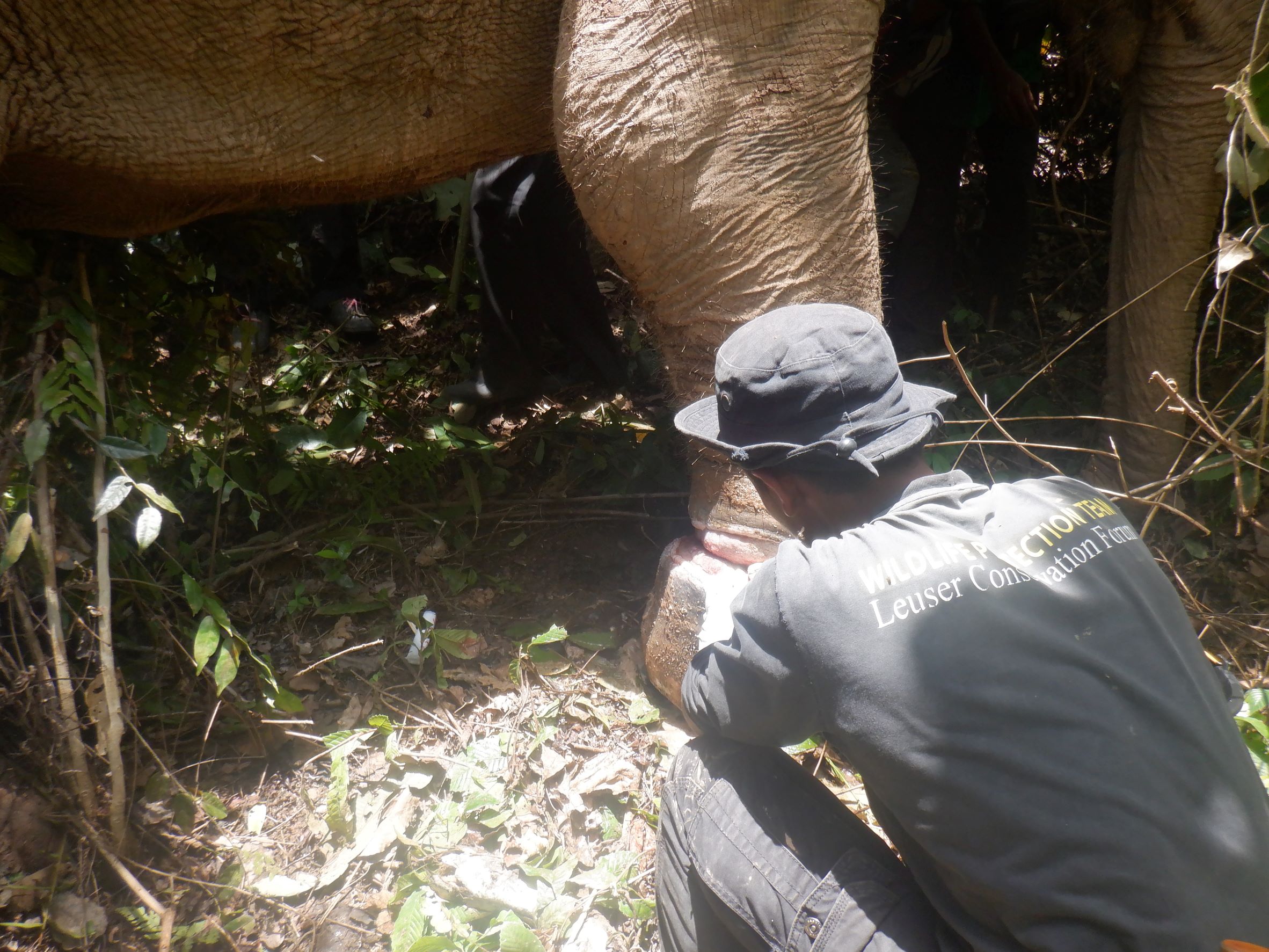 It’s thanks to the local community, who saw her limping in the forest near their village, that Senamo is alive today. They informed FKL's Leuser Rescue Team that they’d seen her in the forest near the Bundun Indah Village in Aceh Tenggara in North Sumatra. Our partner FKL went to the area, along with the local authorities (BKSDA), to investigate and rescue Senamo. They were also disturbed to find nail traps and poisoned bananas in the area, a worrying sign of human-elephant conflict in this area.