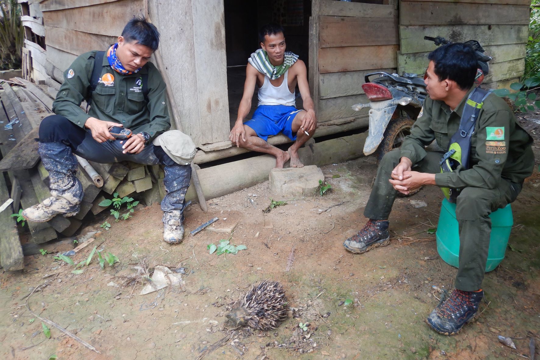 Above: Our rangers meeting with a local farmer to discuss the importance of wildlife conservation and sharing ways that we can support farmers to protect their crops from elephants