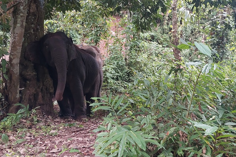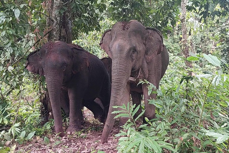 He has been roaming the forest without his herd; a typical behaviour of wild males his age. The tracking team have been able to follow him now that he has a GPS collar and discovered something fascinating- he has been visiting his biological mother! Dor Khoun Mueang was born in this forest around 10 years ago to a wild father and captive mother. He was separated from his mother as part of an illegal sale to a middle eastern zoo and would not have seen her for roughly seven years.