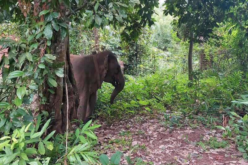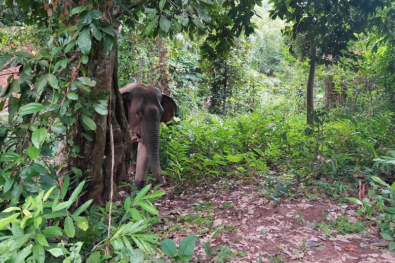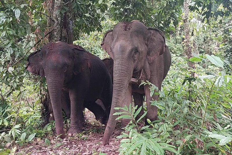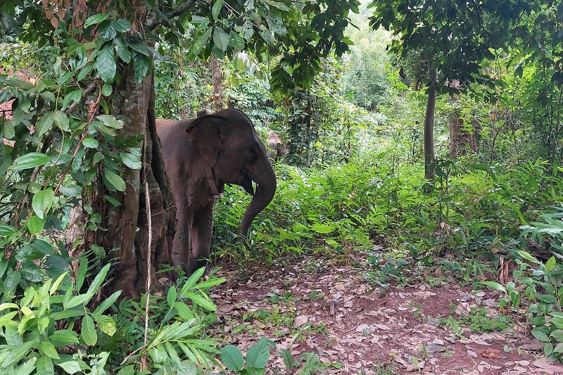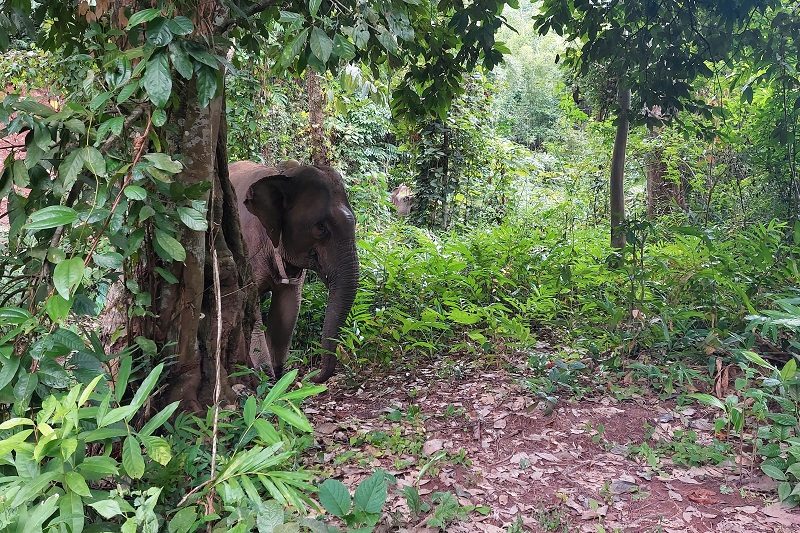Mae Mah has been spotted spending time with a wild bull elephant in the forest over the past few months.