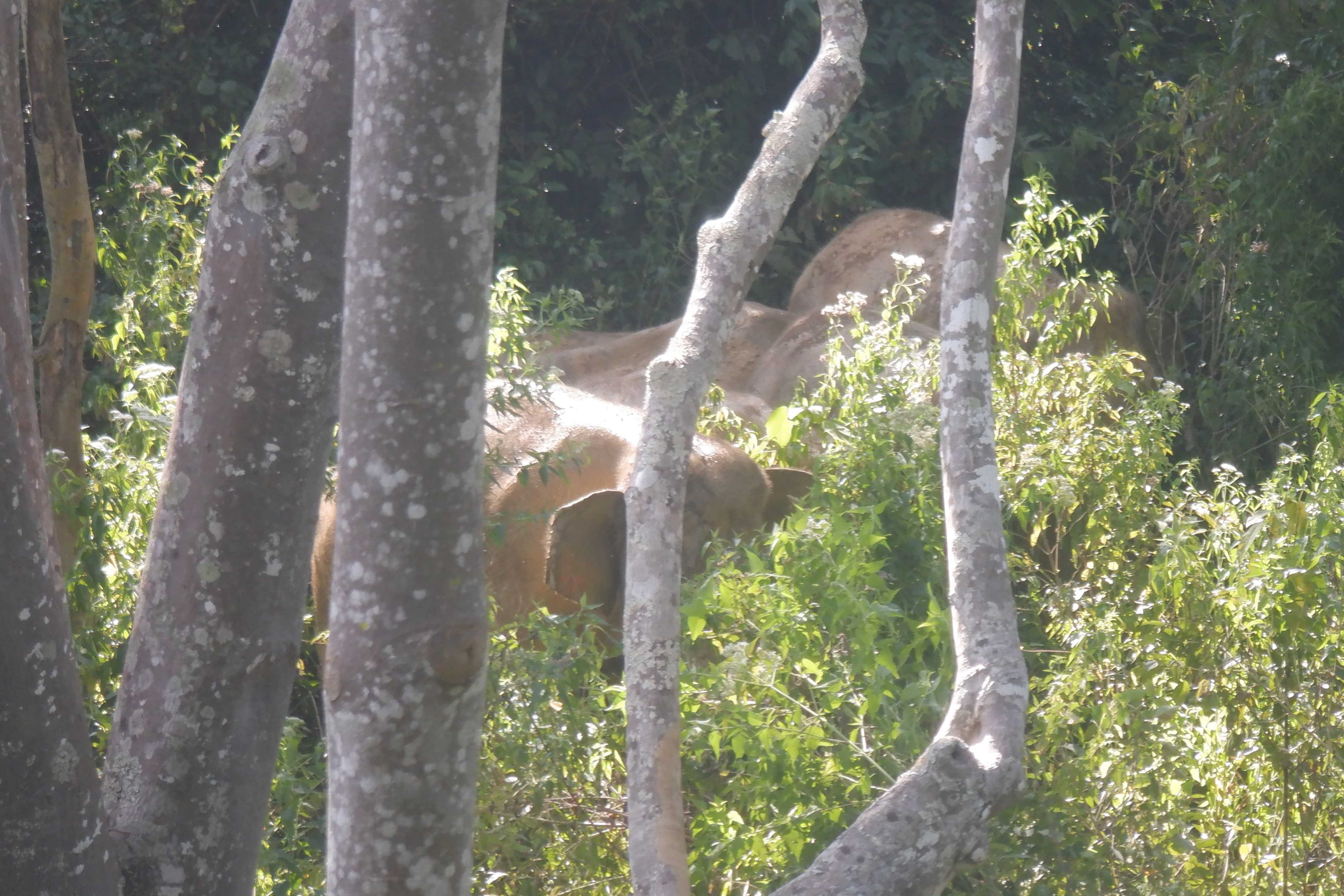 Above: Senamo pictured in through the trees, accompanied by her protective herd