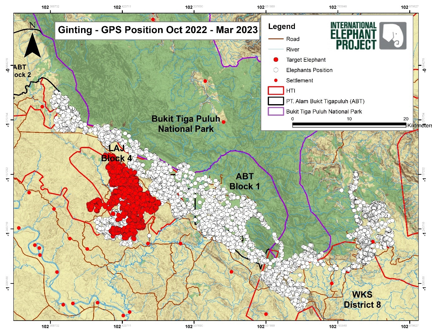 The ECMU team continues its efforts to monitor and mitigate conflicts in order to create space for the elephant group to return to the north side of the corridor road. Thank you to our Ginting adopters for helping to keep her safe and protected in the Bukit Tigapuluh Ecosystem.