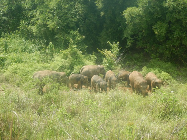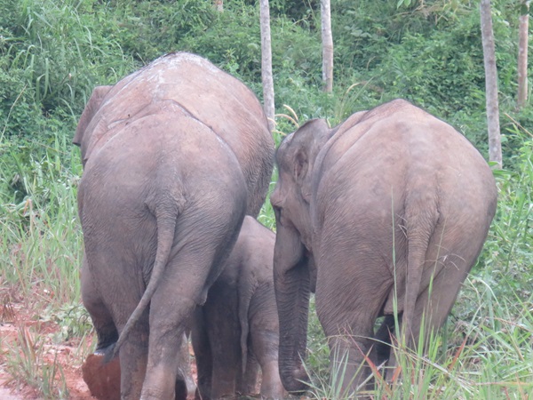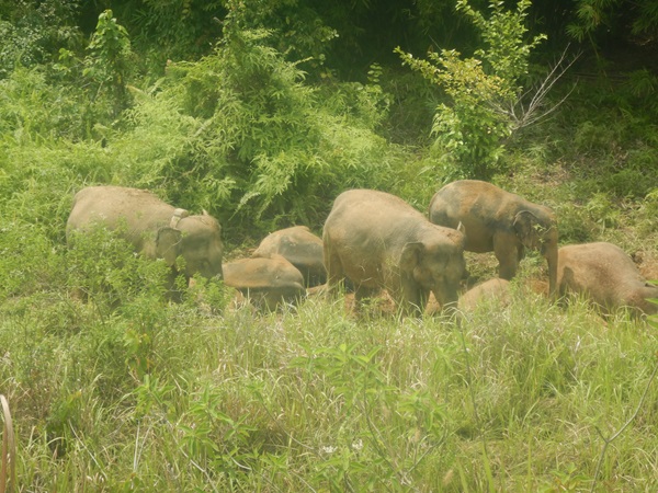 Ginting's herd currently consists of 10-15 individuals, Additionally, 4-5 young male elephants have been observed leaving the group often, venturing into the community plantation area alone or in small groups. Land conversion changes at the Mendelang River location within the community's legal area further complicate the elephants' ability to return to the north side of the WKS corridor road. The ECMU recorded this amazing footage of Ginting's herd recently- how many elephants can you count?